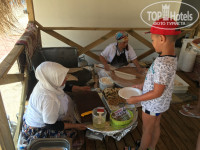 Столовая: правильно..... столовая,а не ресторан) Когда заходишь внутри около кухни если у тебя попадется свободный столик там, то всегда ужасно воняет горелым от кухни с плит . Тарелки бегать искать не надо, но вот вилки да надо поискать, убирают столики плохо, скатертью вытерли столик и хватит. Столики!!!! столики свободные надо искать, хотя есть и второй этаж, но и там всегда все занято. Приходили в разное время и в пол 8, и в 8 столики будите всегда искать!!! Бывает сидишь доедаешь и около тебя стоят ждут когда освободиться столик, также подстаживаться если за большим столиком есть места. Бывает и такое заняли столик посадили детей и пока искали иду к ним уже раз 10 хотели присесть думая что уже поели и щас освободиться столик.Ну и сейчас о еще одной проблеме отеле.....ОЧЕРЕДИ за едой и битва за эту же еду. Сейчас обьясню почему так происходит, очереди не потому ,что все пришли в одно время и стоят накладывают еду. Еды то нет, ее только жарят !!! а очередь стоит и ждет когда пожарят курицу на гриле, вот стоим мы в очереди человек 15-20 и ждем когда пожарят ......пожарили ,выложили еду и до тебя еды не хватило,потому что перед тобой пару человек ушли с горой тарелок. Очередь стоит ,продолжает ждать когда жарят вторую партию. Разве это отдых? нет конечно. А есть то больше и нечего кроме гриля( если вы хотите мясо поесть а не овощи) . Отель не расчитан на такое количество гостей, нет в столовой столиков на столько народу. Это сильно выбивает и портиться настроение.