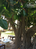 Территория отеля: пальмы ,цветы, много зелени, интересные деревья. Первый раз вижу чтоб местами на территории ,вместо зеленой лужайки были настелены искуственные покрытия зеленой травы, такие есть где детская площадка и у бара,где проходит йога утром .
