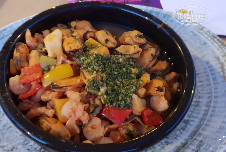 Это наш второй отдых в этом отеле, чем мы вновь остались очень довольны.Изменения в концепции 2019г оценили,нам понравилось.Вновь ощутили заботу персонала ,начиная с рецепции и до официантов.Каждый день нам звонили в номер и уточняли есть ли у нас какие-либо пожелания или замечания.У нас их не было.Питание -супер!Морепродукты,фрукты,ягоды -все в изобилии.Очень понравилась тенденция отеля - практически полного отказа от фаст-фуда(хотя мы его и не едим) .Итальянская и европейская кухня на наш взгляд гораздо лучше(основной ресторан).В ресторане на пляже .до 18.00 меню "дневное",после 19.00 "итальянская кухня",записываться сюда не надо.Мы заказывали осьминога,ризотто.Очень вкусно.В меню этого ресторана кстати есть даже пельмени,борщ.Подача блюд и забота шеф-повара этого ресторана на высоте(видели воочию).В главном ресторане, человек 15-20 так же следят за подачей и остатками блюд,постоянно дополняют ,убирают пустые лотки.Повар-пекарь булочек на завтраке ,очень гостеприимный.Всегда и всем желал приятного аппетита и с большой любовью и заботой подкладывал свои булочки отдыхающим,очень вкусные.Я ела ,хотя дома ,ими ,булочками,не балуюсь вообще. Фото прилагаю.