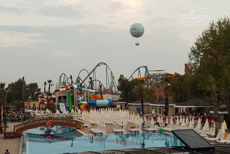 Территории у отеля нет но, мы это знали...заявлено 4 бассейна 1 это глубина 1.5 метра основной есть спасатель, 2 где горки (горки хорошие детям понравились, мне только красная и зелёная дежурят два спасателя), 3 маленький, совсем для малышей, 4 крытый с минеральной водой в спа. Ходили всей семьёй в хамам 80 $ (сауна, хамам с банщиками, массаж отличный, маска на лица, массаж лица) бесплатно можно пользоваться - сауна, хамам, соляная комната, бассейн, тренажёрный зал. Пляж -конечно ожидали лучшего, но думаю все недостатки отель устранит. При нас сделали ws, дорожки и застилали газон. Также лучше ехать к 8-9 или после 14.00. Уборка средняя- поменяют полотешки,( 5 дней нам давали 3 полотенца супруг постоянно ходил ругаться, потом пришла делигация по контролю, устранили, было неприятно бегать по таким вопросам) вытерают пыль т.к. мебель черная пыль будет очень видно, пол обтирали, шампунь, гель, мыло, ват.палочки, диски ватные докладывали постоянно - пилочка, расчестка, швейный набор единоразово. Ключи-карточки размагничивались но, на ресепшен сказали носить не рядом с телефоном что, мы и делали проблемы не стало. Анимация дартс, стрельба из ружья, аэробика, водная аэробика, игры у бассейна не навязывают (+). Теннисный стол один, приходилось ждать, ракетки уже убитые.Вечером редко ходили на анимацию попали на шоу Майкла Джексона и реп ребята танцевали а, так в основном прогулки до легенды, в мигрос или просто гуляли...есть ещё game комната боулинг и автоматы 5$ за человека 20 мячей, 5 жетонов 5-6 $. В основном время у бассейна проводили или на пляже ( минус большой для меня между шезлонгами расстояние минимальное). Экскурсии брали у гида в легенду на целый день вышло 216 $ за 4, на гору Тахталы, сами ездили в океанариум в Анталии. В целом отелю твердая 4 с плюсом. Просьба отелю - убрать мусор где речка.
