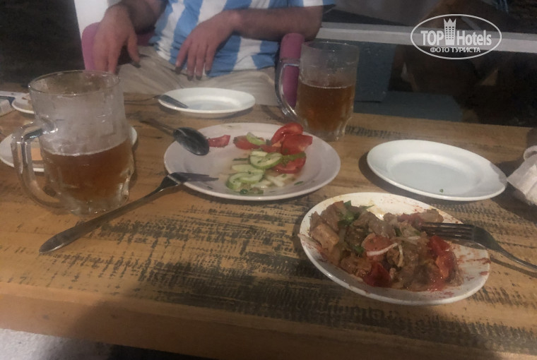 В кафе в городе кормят дорого и не вкусно! В Москве можно поесть на много вкуснее и ДЕШЕВЛЕ 🤷♀️ На фото ужин,который нам обошёлся в 930руб. Две тарелки не вкусного мяса, один салат на двоих и два пива!