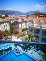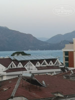 Расположений-очень удачное тем, что вроде и рядом с морем но шум от дороги совсем не слышен! Кругом красивые и цветущие деревья. До фонтанов ездили на автобусе за 3,5 лиры всего 5 мин и ты в центре!