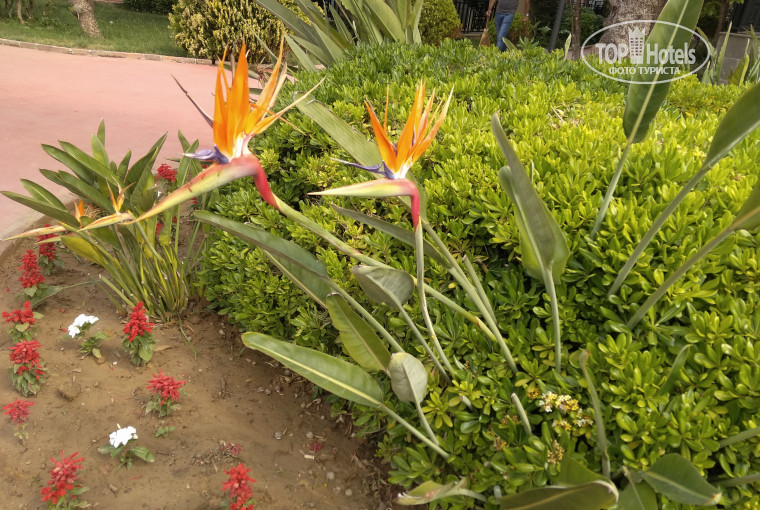 Отдельно надо рассказать о территории отеля. Это красивое, зеленое, живописное, уютное место с множеством пальм, цветов, фруктовых деревьев (апельсины, лимоны, абрикосы) и двумя бассейнами с горками. Из отеля подход к морю по плиточной тропинке метров 100, где справа и слева окружают зеленые полянки с бегающими кроликами))