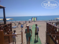 Пляж чистый, лежаков много, есть навес - это плюс. На пляже горячий песок, вход в море и дно галечное - без спец.тапочек больновато ногам. К середине мая море нагрелось до +18-20С, купались без проблем и с удовольствием).