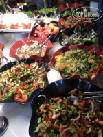 Что касается питания - тут вы голодными не останетесь точно. Не успев закончиться завтрак, уже готовится обед, в перерывах на уличных барах лепешки, перекусы, снеки. Меню разнообразное: рыба, курица, овощи, зелень, фрукты. Многие блюда готовятся при тебе на мангале или гриле. Выпечка и сладости в большом ассортименте. Есть даже мед в сотах. Грязная посуда нам не попадалась. Ресторан большой, разделен на две части: внутри и на свежем воздухе.