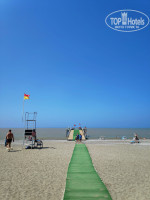 Море.. Большое количество лежаков под тентами, места хватит всем. Приятно поплавать в море и полежать потом в тенёчке) Если хотите загорать у моря - можете дотащить лежак до солнышка. Пляжные полотенца выдают в отеле. Берег в камушках, очень приятно по ним ходить и заходить в море, отличный массаж для ног, для страдающих - в магазинах продаются специальные тапочки как в отеле так и за его пределами. На берегу есть помосток, на нём так же есть лежаки. Вечером очень красиво подсвечивается)