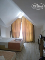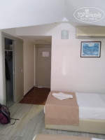 Номер небольшой, уютный, мне одной в нем было комфортно. Балкончик хорошенький) Правда странно повешены занавески, и зацеплены булавкой..) ну может из-за такого строения двери. )