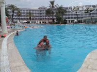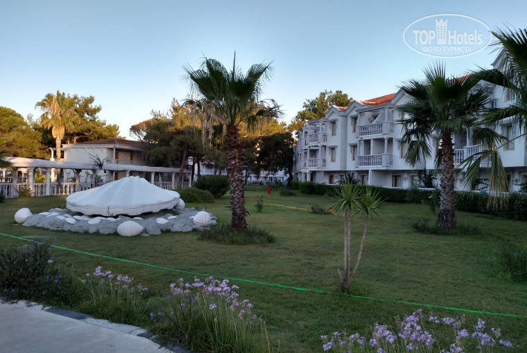 Территория отеля очень большая и зеленая . В отеле одно большое четырехэтажное здание и очень много вилл.В номерах сейф и мини-бар предлагаются бесплатно, Мини-бар ежедневно пополняется безалкогольными напитками: сок, вода, минеральная вода, пепси, фанта. По запросу бесплатно в номер предоставляют - детский горшок, раскладной манеж, чайник, покрывала, одеяла и т.д. По всей территории отеля расположены бары,лобби- бар круглосуточно работает, с двух часов ночи до восьми утра алкогольные напитки предоставляются за дополнительную оплату. Второй бар в главном корпусе работает с десяти утра до двенадцати ночи .Бар в главном ресторане работает во время каждого приема пищи. Бары в ресторанах Максимус и Нона работают круглосуточно. Бар у главного бассейна работает с десяти утра до двенадцати ночи.Бар рядом с пляжем работает с десяти утра до шести вечера. Бар рядом с водными горками работает с десяти утра и до десяти вечер . В дискотечной зоне бар работает с одиннадцати вечера и до двух ночи. Во всех барах предлагаются местные и импортные алкогольные и без алкогольные напитки.Отдыхающих в отеле очень много, всвязи с этим функционирует три ресторана: Максимус (красный цвет браслета, проводится завтрак (поздний завтрак), обед, ужин), Нона (чёрный цвет браслета, проводится завтрак (поздний завтрак), обед, ужин), Новелла Ланата (темно-синий браслет, проводится завтрак (поздний завтрак), обед, ужин, поздний ужин, наличие детского ресторана, включающее детское меню, предоставляется бесплатное использование блендера, микроволновой печи). Детский городок очень большой ,включающий в себя комнату сна, детский бассейн с горками, игровую комнату, песочницу, лабиринт, кинотеатр, мини-амфитеатр, в котором ежедневно проходят мини-дискотеки для детей, карусель (платно), игровые автоматы (платно). По средам и по субботам проходятся тематические вечеринки (белая вечеринка и красная вечеринка), приезжают профессиональные танцоры, несколько раз в неделю проходятся шоу в амфитеатре ,выступают профессиональные танцевальные коллективы