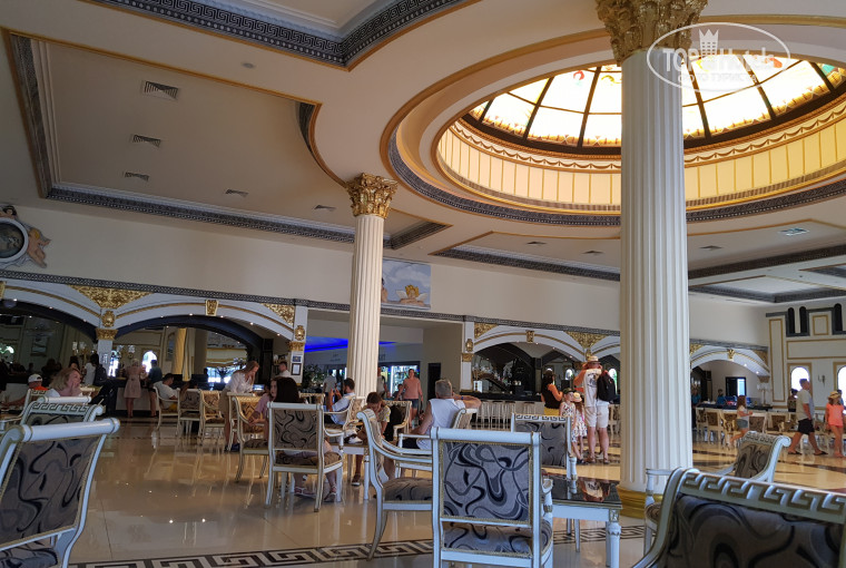 Добрый день, ехала отдыхать с двумя детьми (14 лет и 1,5 года). Бронировали отель через туроператора TUI. Вылет из Внуково, авиакомпанией АзурАвиа. Вылет задержали на час, долетели до Анталии за три часа. До отеля добирались на трансфере около часа. Приехали в отель примерно в 21 час. На ресепшен предоставила сопроводительное письмо с Tophotels, нам надели красные браслеты и сразу отправили на ужин. После ужина нас быстро заселили, на выбор было представлено два варианта проживания - стандартный номер в отеле на втором этаже в видом на крышу, там было очень шумно, рядом работала вентиляция и сам номер маленький, и улучшенный номер в вилле под номером 19. Выбрала второй вариант. Сначала показалось, что вилла расположена далековато, но все оказалось в шаговой доступности, и тк со мной маленький ребенок, важна была тишина. В номере все устроило, чисто, мебель хорошая, техника и санузел работали исправно, только кондиционер тарахтел. К нашему приезду в номере уже стояла детская кроватка и горшок. За чайником сходила на ресепшен и его принесли в номер минут через семь. Лично для меня неудобство состояло в том, что номер расположен на втором этаже и таскаться с коляской было тяжеловато. Отель заполнен на 100%, порядка двух тысяч человек. Менять номер на следующий день не стала, тк приехали отдыхать, а не заниматься переездами. Один раз видела в номере маленьких муравьев, но виновата сама - оставила на столе детский творожок, после этого еду не выставляла и муравьев больше не было. Необходимо брать с собой фумигатор от комаров, тк каждую ночь в номере появлялись комары, при том, что окна не открывали, в маркете отеля фумигатор стоит 15$. Уборка каждый день, убирали хорошо (у нас была уборщица женщина), полотенца меняли каждый день, регулярно приносили шампунь, гель для душа и др. Мини-бар пополняли каждый день.