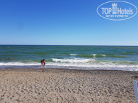 Море теплое, на основном пляже не всегда чистое, тк рядом впадает река. На пляже имеются кабинки для переодевания, душевые, лежаки всегда можно найти, но конечно не на первой линии. На VIP-пляже заход не очень удобен, там галька, но море чище.
