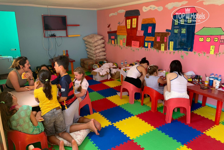 Детям понравился бассейн с горками , горки по моему работают с 10.00 утра до 12.00 и с 15.00 до 17.00 часов. Дети не хотели выйти из бассейна.Анимация однообразная, но вполне весёлая. Детям главное нравилось, они нам давали наслаждаться отдыхом. Есть игральная комната для детей,мини клуб. Дети там играли друг с другом,рисовали на футболках но конечно за дополнительную плату. Обслуживание порадовало, официанты быстренько все убирают, приносят, но такой шум в ресторане что иногда было неприятно от всяких шум посуды.