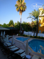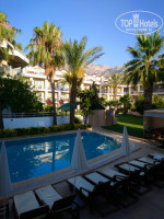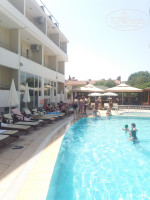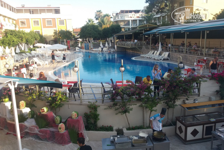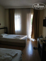 В отель прибыли в 4.30 утра. Сразу увидели что с отеля отъезжают гости и поняли что есть шанс поселиться раньше о чем и спросили. Нас попросили минут 30 посидеть на диване и подождать. (Для тех кто приезжает ночью или рано утром: на рецепш есть несколько мягких диванов на которых можно отдохнуть, а на втором этаже над рецепшен есть несколько чудесных мест с матрасами,где можно вполне комфортно отдохнуть с дороги). Но мы решили попробовать заселиться сразу, о чем и спросили. Через минут 30 меня подозвали и сказали, что заселение происходит в 14 часов, но за в отеле освободились несколько номеров и за плату в 10 долларов мы можем выбрать один из трех свободных номеров и заселиться сразу, что мы с радостью и сделали. Выбрали стандартный номер на 1 этаже 4 корпуса с чудесным видом на бассейн Релакс, справа видны горы, слева - Снекбар. Сразу хочу сказать преимущества именно этого места: чудесный вид, но ночью в номере при закрытой балконной двери полная ТИШИНА. В номере есть шкаф с 4 плечиками (я бы девушкам посоветовала взять парочку своих еще), в шкафу расположен сейф (цена 2 дол. за сутки, мы взяли), на балконе есть сушка для белья (не во всех номерах), на балконе два стула и столик (все из пластмассы). Кровати с хорошими матрацами, тумбочка (у нас была одна, с двумя тумбочками), трюмо (в нем так же две тумбочки),минихолодильник (с одной 1,5 л. воды, потом можно пополнять самим), плоский ТВ (три российских канала: СТС, ТНН и Планета (Россия), кондиционер (наш работал отлично). В Ванной фен (очень слабый, только слегка подсушить волосы), геля для душа и шампуни (пополняли, если эти убрать), мыло жидкое, мыло твердое (так же пополняли), душевая кабинка (душ не снимается, но регулируется лейка), туалетную бумагу пополняли постоянно. На каждого гостя по 2 полотенца (маленькое и большое) и общее для ног. Полотенца меняли если оставить на кровати, полу. В Ванной есть два крючка, стакан для зубных щеток. Полотенца из номера не выносите: так стыдно за туристов, когда у них набирают полотенца и прилюдно им объясняют, что их нельзя выносить их номера... Кстати, они белого цвета. Для пляжа, моря рекомендую взять свои или купить на 1 доллар полосатые турецкие (продаются везде). Пляжные платные полотенца не брали (1 доллар стоят, плюс при замене опять один доллар, и залог). В целом номер отличный, если придраться: не свежая тюль....Для мерзляк в шкафу были одеяла. Мы спали под простынью (типа мохровой). Убирали каждый день, постельное вроде не меняли нам неделю, но мы и дома чаще не меняем, так что претензий у нас не было.