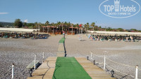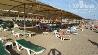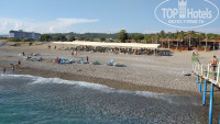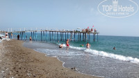 Грязно. Шезлонги, столики, матрацы – не вытираются. Урны не всегда убираются, стоят по несколько дней. Пляж имеет отрытую границу от территории свободного посещения. Местные жители приходят вечерами к морю, гадят бутылками, обертками и часто на территории пляжа отеля. Никто не убирает, ветер разносит. Песок грязный – бычки от сигарет, семечки, и т.д. Защитный тент от солнца очень высокой плотности. Практически не пропускает ничего. Первый раз такой вижу. Обычно защита 80-90%, но не полная и сплошная. Дорожка до пирса сделана из паллет. Не уровень это для такого отеля. Часто в море сухие листья от деревьев. Заносит я так понимаю река, которая в 2-3 км впадает в море.