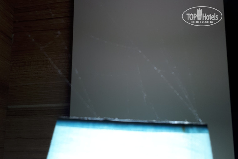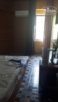 Продолжу описание наших мытарств по "пятизвездочному отелю". После встречи с одним отельным гидом, я подключила второго нашего гида к этому вопросу. За 0,7л. бутылку пятизвездочного коньяка (брали для себя) Нияз помог нам. Нас заселили после обеда в номер с балконом, но тоже с плесенью, хотя без едкого запаха. И на балконе потолок и в комнате с большим пятном плесени. Как и в первом номере- телевизор не работал, шкафчик для одежды- это одно название. Там поместили маленький холодильник с 1 бутылкой воды, сейф ( оплата 3 доллара в сутки), вверху пантограф с вешалками. Можно повесить только футболки,т.к. платья по длине не войдут, надо будет подвернуть пополам. Но мы были рады, что в номере светло, можно открыть дверь на балкон и свободно дышать. Про полотенца, уборку, комплектацию номера писать не буду. Унитаз, душевая кабина и раковина - разместились на 3кв.м. Умельцы, да и только! А мы выполняли роль факира, когда посещали это заведение. Скажу одно- очень печально. Вещи жили в чемоданах, подперших наши кровати. Фото номера не делала, сняла видео. А видео сюда не загружается :((