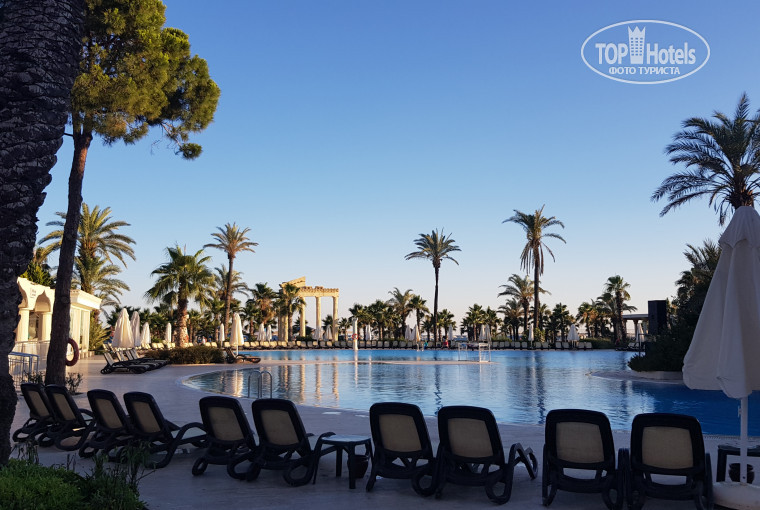Территория отеля составляет 180.000 м2. В отеле одно большое четырехэтажное здание и очень много вилл.В номерах сейф и мини-бар предлагаются бесплатно, Мини-бар ежедневно пополняется безалкогольными напитками: сок, вода, минеральная вода, пепси, фанта. По запросу бесплатно в номер предоставляют - детский горшок, раскладной манеж, чайник, покрывала, одеяла и т.д. По всей территории отеля расположены бары,лобби- бар круглосуточно работает, с двух часов ночи до восьми утра алкогольные напитки предоставляются за дополнительную оплату. Второй бар в главном корпусе работает с десяти утра до двенадцати ночи .Бар в главном ресторане работает во время каждого приема пищи. Бары в ресторанах Максимус и Нона работают круглосуточно. Бар у главного бассейна работает с десяти утра до двенадцати ночи.Бар рядом с пляжем работает с десяти утра до шести вечера. Бар рядом с водными горками работает с десяти утра и до десяти вечер . В дискотечной зоне бар работает с одиннадцати вечера и до двух ночи. Во всех барах предлагаются местные и импортные алкогольные и без алкогольные напитки.Отдыхающих в отеле очень много, всвязи с этим функционирует три ресторана: Максимус (красный цвет браслета, проводится завтрак (поздний завтрак), обед, ужин), Нона (чёрный цвет браслета, проводится завтрак (поздний завтрак), обед, ужин), Новелла Ланата (темно-синий браслет, проводится завтрак (поздний завтрак), обед, ужин, поздний ужин, наличие детского ресторана, включающее детское меню, предоставляется бесплатное использование блендера, микроволновой печи). Детский городок очень большой ,включающий в себя комнату сна, детский бассейн с горками, игровую комнату, песочницу, лабиринт, кинотеатр, мини-амфитеатр, в котором ежедневно проходят мини-дискотеки для детей, карусель (платно), игровые автоматы (платно). По средам и по субботам проходятся тематические вечеринки (белая вечеринка и красная вечеринка), приезжают профессиональные танцоры, несколько раз в неделю проходятся шоу в амфитеатре ,выступают профессиональные танцевальные коллективы