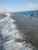 До моря можно доехать на развозке или пройти пешком минут 5. Мы ходили пешком. Дорога через лес, запах сказочный. Вообще дорога не напрягала. На пляже свободные лежаки были всегда. Заход в море песок и мелкая галька. Заход довольно резкий. Буквально два метра и резко глубоко. Это и плюс и минус. За две недели что мы были более менее спокойное море было всего два раза, остальное время волны.