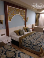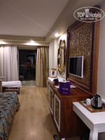 Приехали в отель около часа ночи, от аэропорта ехали где-то полтора часа. Номер должен был быть с видом на соседний отель, я в принцыпе была готова, но на ресепшене стали активно предлагать с видом на море по 10 долларов в сутки. В итоге сошлись на 50 евро за 13 ночей. (такую сумму в голове я держала как максимум) Скажу, что не пожалела. Номер шикарный. Убирали всё очень хорошо, удобный матрас. Минибар пополняли всегда. Вид конечно не совсем на море, но лучше чем на соседний отель, расстояние между которыми метра 3-4. Вообще отель гламурный 🤪 золото, скульптуры, шикарная люстра в холле. НО слышимость просто отличная. Слышно каждый чих. Это ужас, когда просыпаешь от ощущения что тебе в ухо что-то говорят. В отеле отдыхает много немцев, турков, французов и совсем мало русских.