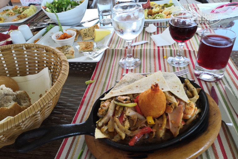 Территория отеля огромная. Мы жили в вилле 3323. В номере сейф и мини-бар предлагаются бесплатно, обновляется ежедневно, пополняется безалкогольными напитками: сок, вода, минеральная вода, пепси, фанта. По всей территории отеля расположены бары,лобби- бар круглосуточно работает, с двух часов ночи до восьми утра алкогольные напитки предоставляются за дополнительную оплату. Второй бар в главном корпусе работает с десяти утра до двенадцати ночи .Бар в главном ресторане работает во время каждого приема пищи. Бары в ресторанах Максимус и Нона работают круглосуточно. Бар у главного бассейна работает с десяти утра до двенадцати ночи.Бар рядом с пляжем работает с десяти утра до шести вечера. Во всех барах предлагаются местные и импортные алкогольные и без алкогольные напитки.Отдыхающих в отеле очень много, всвязи с этим функционирует три ресторана: Максимус (красный цвет браслета, проводится завтрак (поздний завтрак), обед, ужин), Нона (чёрный цвет браслета, проводится завтрак (поздний завтрак), обед, ужин), Новелла Ланата (темно-синий браслет, проводится завтрак (поздний завтрак), обед, ужин, поздний ужин, наличие детского ресторана, включающее детское меню, предоставляется бесплатное использование блендера, микроволновой печи). У нас были красные браслеты, ресторан очень понравился разнообразием блюд, но не всегда места хватает в помещении, несколько раз обедали на улице - душно. Отель, как нам сказали, называют "детский лагерь", а все потому что детский городок очень большой ,включающий в себя комнату сна, детский бассейн с горками, игровую комнату, песочницу, лабиринт, кинотеатр, мини-амфитеатр, в котором ежедневно проходят мини-дискотеки для детей. По средам и по субботам проходятся тематические вечеринки (белая вечеринка и красная вечеринка). Понравился приватный пляж, там замечательные безедки. Детям очень понравилось, да и мы с удовольствием провели время. Кстати, у них замечательное мороженое, объедались каждый день!! Спасибо!!