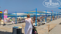 Пляж-отдпльная история. До него идти минут 5 ,через подземку переход, и далее спуск по лестнице,по которой не то что с ребенком,или на коляске как-то спуститься , а самой страшно. Лестница шаталась вся с высокими ступеньками и кривыми. Мы были на нем 1р и все , места мало , народу много . Ходили на пляж отеля Dogonay чпрез их вход спускались и спокойно проходили, если охрана спрашивала у шлагбаума,говорили в магазины идём, и старались чтоб наши браслеты Anjeliq не бросались в глаза. Там цивильная территория, пляж оборудован лежаками огромным количеством, туалет, душ, шланг чтоб от песка ноги помыть, и тд. Нашему отелю до него далеко. Отель на 3 * с натягом, жаль что руководство отеля не принимает меры, и трезво смотрит на ситуацию. Кто дал этому отелю 5* и по каким критериям хотела бы посмотреть. Вообщем все, ни капли не преувеличила свой отзыв. !