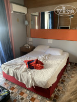 «Ребята! Все кто выкупил меняйте! Все кто думает - даже не смотрите! Ситуация такая, что почитав отзывы, все равно как бараны поехали сюда, такие вот мы) во первых выехали из аэропорта в 17:40, прибыли в отель в 21:30 где то. То есть отзывы по типу долго ехать подтвердились, не верил, так как у меня родители ехали 1,5ч как то раз сюда же, в аланию) очень странная была поездка... если посмотреть на карте тех отелей куда вёз наш автобус туристов, а их было 4, то наш отель был где то по удалённости 2-й из 4-х которые были.... но при этом наш был последний( получилась такая тема, что даже у учётом того, что из туристов в автобусе около 20чел, в наш отель приехало около 12, наш автобус сначала развез туристов в самые дальние отели и нас уже на обратном пути своём в аэропорт высадил. Приехав - сразу хамы на администрации, реально, как люди ранее писали, рот даже без денег не откроют, делают все чтобы ты хотел за что то где то денег дать. Территория отеля вообще не понятна, куда идти и тд.... везде очень сильные подъемы. Мне как человеку достаточно спортивному, где то трудно было спускаться, где то подниматься. Соответственно могу сделать вывод, что например, родителей бы ни за что сюда бы не отправил, дискомфорт. То же самое будет касаться полных людей, людей с ограниченными возможностями, девушек на каблуках или «хорошо погулявших») Главный корпус через дорогу от остальных и все корпуса и большинство номеров, как узнали в последствии в плесени! Фишка кстати этого отеля - отсутствие света в туалете и душе, очень много одинаковых ситуаций и только по приезду. Ванная с душем в совокупности 2-3кв.м. Шкафа нету, сейф не работает. Спас только кондиционер и то по приезду очень много людей уже отдыхающих здесь стояли очередью по этой проблеме. Сам номер закрывается как в американских фильмах на цепочку и щеколду)) Но кстати есть такая тема, что с утра эту щеколду абсолютно спокойно открыл электрик, ПОТОМУ ЧТО ЩЕКОЛДА БУДЕТ АКТУАЛЬНА ТОЛЬКО ПРИ ОТКРЫТИИ ДВЕРИ В ПРОТИВОПОЛОЖНУЮ СТОРОНУ ОТ СТОРОНЫ ОТКРЫТИЯ ДВЕРИ А НЕ В ЭТУ ЖЕ СТОРОНУ😂😂😂😂 вообщем жесть)) волейбольная площадка на «пляже», если его конечно можно назвать пляжем, отсутствует - только ковровое покрытие на территории где никто не играет. Рядом с отелем проводятся ремонтные и строительные работы! Народу кстати в целом очень много....) еды вроде как достаточно, пока нет вопросов) но с утра яичницу как во многих отелях не готовят вообще..... кстати по поводу приборов в ресторане и чистых столов не ждите, как и стаканов чистых и вообще их наличие) вообщем те кто собрались ехать на море - забудьте! Все кто у бассейна тоже напрягитесь, народу жесть) мы сегодня едем на пляж «Клеопатра» недалёко тут! Напишем ещё отзыв че да как) но если есть выбор - переплатите 15тр и езжайте куда угодно но не сюда)) кстати вай фай платный) сутки - 3$, 3 дня - 7$, 7д- 15$. Как то так) благо мы здесь конкретно на 5 чистых дней)