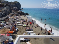 Есть ещё на скале оборудованное место, где два ряда лежаков примерно на 40 человек (хотя, может и больше). И есть пирс - там человек 100 может и поместится, как селедочки. Но суть в том, что если вы с утра не займете себе место, то лежать негде будет. Кстати, те красивые бунгало с лежаками на фото за бабло: 5$ те, что возле пляжа, и 15-20$ на пирсе. В день.