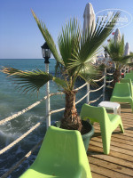 Пляж: средняя галька. Но, имеется и понтон, с выходом в море, на котором чудесным образом расположился бар, лежаки с зонтами, кадки с пальмами и удобные стульчики для принятия солнечных ванн. Чуть-ли не на каждом шагу оборудованы души. Места всегда есть. Единственное, к чему есть замечание, так это полотенца. Их бы обновить конечно. Море очень чистое. За всё время отдыха - ни одной травинки-водоросли. Водные развлечения, как и везде - парашют, банан, гироскутер и т.д. Бассейнов на территории 6 или 7 (мы на море в-основном). На большом бассейне рядом с морем аквааэробика с анимацией, а рядом бар с напитками и горячими закусками.
