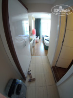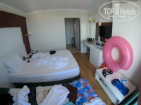 2. Номер. На официальном сайте отеля отсутствуют такой класс номеров, как эконом, однако, туроператоры чаще продают именно этот тип номеров. Если же мы откроем концепцию отеля за 2018 год (2019 года нету на сайте), то таких номеров 9 шт, но не нужно быть математиком, чтобы посчитать, что только за день в этот отель заезжает в среднем 5-10 туристов, то есть номера эконом кончились бы сразу. И так, что это за номер? У отеля есть два блока, первый это старое здание со старыми номерами и новый блок с номерами получше (вот фото этих номеров вы и видите на всех сайтах). Вас скорее всего заселяют в эконом номер. Меня заселили на -1 этаже и это был номер рядом с кухней, соответственно шум тарелок, вилок + запахи вам обеспечены с 7 утра до 22.00. Вас такая ситуация не устраивает, и вы идете на ресепшн с просьбой поменять номер и с вас там попросят от 30-60 долларов, если отказываетесь - продолжаете жить в своем номере. Касаемо состояния эконом номеров, все не так плохо, НО на балкон не выйти, он очень узкий, окна у меня выходили в соседний отель, оттуда был постоянный шум + вытяжка кухни около балкона, то есть там луче не появляться, повесили сушить ваши вещи и зашли обратно. В ванной хороший напор воды, но нету вытяжки, соответственно высокая влажность. Вся сантехника работает, но старая и местами ржавая. Стандартная кровать, но простыня грязная и местами прожжённая сигаретами. Кондиционер работает еле как + сломаны решетки обдува, соответственно поток воздуха всегда дует на вас, и температура не регулируется, он либо дует, либо нет. Ночью вы будете замерзать, а днем будет душно. Есть плоский телевизор с русским тв, холодильник не холодит. Местами в номере грязь, сыпется штукатурка. Однако, доплатив 30-60 долларов вы можете переехать и там ситуация изменится в лучшую сторону, но не до конца.