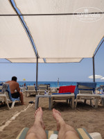 Пляж - песок + галька при подходе к воде. Достаточно лежаков, как уже говорил есть навесы. Заход в воду тяжеловат, лучше прикупить закрытые тапочки для купания и уже через метра 3-4 от берега становится глубоко. Душ на пляже со слабым напором, а вода ледяная. В целом пляж неплохой, территорию постоянно убирают.