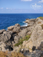 Если мы пришли на пляж и нам не лежится, поворачиваем налево, идем вдоль пляжа до конца и упираемся в лес, там есть тропа, чтобы подняться наверх. Идем наверх, нам открывается красивый вид со скал и в целом приятное место для прогулок. Рекомендую для такой прогулки выйти в 8 утра, чтобы находиться там не в самую жару.