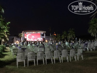 Анимация находится на пляже. То есть сцена и вечерние представления на пляже. А это полноценная вторая линия. Пусть и ходит тарантас. Пусть и дорога занимает 7-10 минут пешком под кедрами. Но нужно переходить через дорогу без ПП и машины в общем-то не останавливаются чтобы пропустить переходящих дорогу, да.