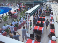 Отдыхала в отеле с детьми конец июня - начало июля Очень понравилось, хотя отель небольшой (раньше отдыхали в клубных отелях). За счет небольшого количества туристов - очень внимательный сервис - все улыбаются, помогают, доброжелательные. Качество уборки на уровне - убирают каждый день, шампуни-гели каждый день, приятный бонус бритвенный станок и пена, белье меняли через 3 дня. Питание разнообразное, всем всего хватало, правда старались ходить к открытия, всегда кушали в помещении (из-за прохлады) . Официанты вежливые, посуду забирают быстро. Тарелок, кружек, приборов всем хватало. Очень вкусные мясные блюда. Брали обычно овощи и мясное, закуски не пробовали. Кондитерка - это вообще любовь (особенно турецкие сладости), не могла устоять. Фрукты во все приемы пищи - были арбузы, дыни, черешня, сливы, абрикосы. Кофе из автомата - не очень, соки как везде растворимые. Особое отношение к пулбару - бармены круты, особенно Мехмед. Каждый раз что-то новенькое и очень вкусное. Мехмед знает каждого посетителя, его предпочтения, а как мастерски орудует бокалами - целое искусство. Даже детям делал всякие красивые коктейльчики. Снек бар - радовал детей бургерами, картошкой фри, и пироженками. Каждый день - мороженое. Около бассейна делают Гезлеме - вкусно, ребенку дали сделать самой - был полный восторг. анимации - нам хватало - с утра гимнастика, аквааэробика, дартс, вечером развлекаловка и мини-диско. Аниматоров немного - Оля, Ильяз, ведущий и диджей Омар. Но они сделали наш отдых, даже команда из 17 аниматоров в прошлом не могла доставить столько радости, как эти 4 весельчаков. За анимацию твердая 5. Мы скучаем по отельному танцу ). Поскольку были с детьми, порадовало отсутсвие ночной анимации - всех желающих забирали в клуб. на территории ночью тишина. Пляж - галечный, галька нормальная, тапочки не покупали, вход пологий, ребёнок младший купался один. На глубине песок, много рыб. Брали маску и гоупро - поснимали, рыбки плавают стайками - красиво. Море - наипрозрачнейшее, практически без волн, один день с утра штормило, к обеду успокоилось. Дорога на пляж конечно так себе, но мы ходили очень рано, сразу после завтрака, лежаки всегда были первый ряд, но и тем кто приходили позже - хватало. Кабинка для переодевания и душ - есть, туалет отсутствует. Это минус. Небольшой бар на пляже - сок, водичка, чай. - не пользовались. Тут же прокат - яхта, параскай ,банан - стоимость не узнавали. От центра и тц - недалеко, каждый день ходили погулять на площадь, много магазинчиков (2 Вайкики и супермаркеты - там брали масло, магнитики), аптек, фруктовых лавок. Все говорят на русском - проблем нет. Классное кафе-мороженное рядом, ходили туда за трехэтажными мороженками. До Аэропорта минут 40-60 в зависимости от загруженности трассы. Отель рекомендую. Отдыхом остались довольны