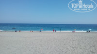 Самый большой плюс отеля — это расположение. Первая линия, вышел из отеля и ты уже на широком песчаном пляже с видом на Этну. Есть оборудованный пляж, там платные шезлонги и зонты, а есть не оборудованный, можно на полотенце позагорать. Море чистое и теплое, через два-три метра от берега уже глубоко, вход песчано-галечный, заходить лучше в тапочках для купания.