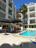 3) Питание - не сильно разнообразное, если вы привыкли в огромным рестораним 5* Туниса и Египта, но все свежее и вкусное. На обед и ужин всегда есть мясо, мясные соусы, запеканки, много свежей зелени, каши, макароны, картофель фри и всякие салатики, нарезочки и сладости. Один раз делали филе индейки на гриле и рыбу. Из алкоголя брали белое и красное вино, очень понравилось пиво, в баре разливаю в большие бокалы или стаканы и не ограничивают в количестве. Отдельное спасибо девочкам официантам, столы всегда чистые и уборка грязной посуды происходим практически мгновенно)))
