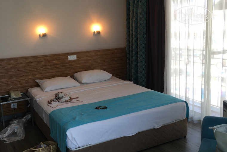 У отеля есть собственный пляж, лежаки бесплатные. До моря идти 100 метров. Территория красивая, ухоженная, все сотрудники очень приличные и улыбчивые. Всегда вам помогут и все расскажут. Уборка в номере хорошая. Все чисто.