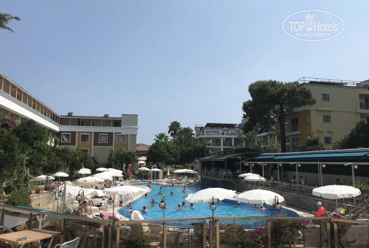 Отдыхали с ребёнком, но сами молодые родители хотелось что то среднее между молодежным отелем, и спокойным семейными отдыхом это золотая середина друзья! В 23.00 тишина и покой. Музыка не сильно громкая, персонал приветливый, ведущий конкурсы программа в целом очень хорошая и качественно проработанная хорошо отдохнули и душой и телом. Спасибо моему другу, который сейчас будет на фото, спасибо талантливой нашей землячке Ольге. Спасибо вам друзья! Мы обязательно еще приедем, и всем рекомендуем и советуем этот отель так как уважение к людям в первую очередь является основополагающим фактором и у этого персонала очень приветливые и хорошее отношение. Так же и посетители данного отеля очень вежливые люди приятно было провести время. Ни одного пьяного ни одного валяющегося и так далее. Все как то на позитиве отдыхают дружно и очень весело, море теплое чистое пляж мелкая галька. Все отлично и цена соответствует качеству, турецкие сладости стоят не дорого и очень свежие и вкусные все остались довольны, люди на улицах по мимо отеля доброжелательные не сильно навязчивые, вся инфраструктура в целом оставила хорошее впечатление. Кстати, недалеко от нашего отеля есть агенство местное, которое организовывает экскурсионные туры. их в принципе в Мармарисе достаточно много. Но я воспользовалась услугами "Герасим на все согласен". Отличный зазывала, все экскурсии были от него, организация была отличная.. И цена отличается практически меньше в 2 раза, от того что рекомендуют офиц агенства.