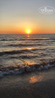 На пляже установлено достаточно много зонтиков и шезлонгов. Пляжную зону ежедневно убирают с помощью трактора.