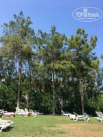 Когда готовились к поездке, нас предупредили о том, что пляжная зона очень маленькая. Отчасти это так, но буквально за песочной-пляжной зоной начинается зелёная лужайка под соснами, где стоит огромное количество лежаков с матрасами. Поэтому место для отдыха хватит всем! Здесь не так много туристов, кто желал бы занимать все лежаки сразу и на весь день, - я наблюдала такое не раз в других местах. Сам пляж галечно-песочный. Море очень чистое. Для удобного входа на наших глазах соорудили специальный деревянный настил с перилами. Пляжные полотенца меняли по первому требованию с 8.00 до 17.00