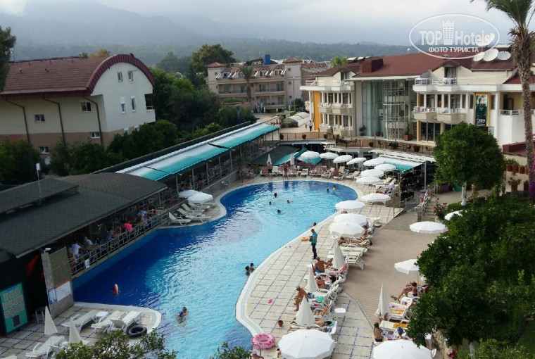 Отель с небольшой территорией,достаточной уютный. Два бассейна . Пляж очень маленький , находится через дорогу (надо пройти через пром зону соседних отелей.)Столовая тоже небольшая. На обед и ужин очереди.Еда скромная. Заселили после 14 00 .Общее впечатление об этом отеле неплохое ,но доставали два человека) Это работник хамам ,который постоянно предлагал воспользоваться его услугами и продавец магазинчика Кожи и меха. На ресепшен работник хамама практически не дает прохода только что приехавшим людям. Так же может подойти к вам в баре . Работника магазина даже не смущает,если вы задремали на лежаке возле бассейна! Подходит и толкает свою однообразную речь. Фото работника хамам прикрепляю) Из за него не хотелось проходить через ресепшн .