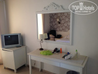 Мебель старенькая, хоть и главный корпус. Я на неё не обращал внимания. Поспал и пошел на море. Душ работал. Слив не засорялся. Слив в туалете функционировал. Фен был в рабочем состоянии. Холодильник работал и хорошо морозил. Телевизор исправен, и даже был один русский канал. Настенные бра работали не все. Это не мешало! Более всего дискомфорт доставил кондиционер. Утром и днем спустя 40-60 минут работы с него шел , в прямом смысле слова, тухлый запах, как с канализации. Вечером хватало всего 5-10 минут. Англоговорящий персонал на ресепшен не смог решить эту проблему, сославшись на непонятные причины,по которым решить её не представлялось возможным!!!! Вечером на вахту заступал русскоговорящий Али, про которого много пишут, и , действительно,пытался нам помочь. Для этого пришлось на второй день (вечером) стоять над ним и контролировать телефонный вызов техническому специалисту, который с первого раза не появился у нашего номера. Их , к слову , несколько и они в отеле есть!!!!! На третий день моих попыток решить вопрос с кондиционером , удалось "выбить " у Али в " on-line" режиме технического специалиста, который пришел около 24:00 и устранил проблему всего-то на одну ночь!!!!!!!!! Приняв ситуацию, пришлось круглосуточно оставлять балконную дверь открытой. Как говорят дети: ОГРОМЕННОЕ СПАСИБО, что она (балконная дверь) была !!!!!!!)))))))