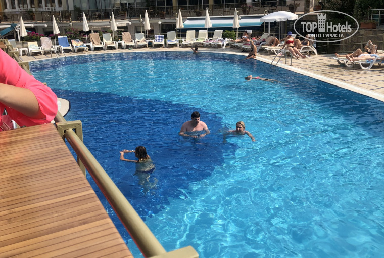 На территории отеля 2 бассейна глубиной 140 см, вокруг шезлонги,зонтики,маленькие столики между шезлонгами, можно приносить коктейли с бара и т.п. Так же в отеле есть спа центр, можно посетить хамам, представлены услуги массажа (даже медицинский массаж).