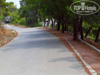 Территория отеля небольшая, зелёная, много цветов, кустарников и деревьев. Не очень большой бассейн, быстро нагревается и там копошатся дети. Есть детские качели, бильярдный стол, стол для настольного тенниса, терецкая веранда с подушками. На ресепшен и в холле 2 корпуса есть бесплатный wifi, работает, но медленно. Анимации нет, просто включают музыку у бассейна. Из окон столовой виден соседний двор в курами и овцами. На завтрак к бассейну приходит серый кот и ждёт от гостей колбаску. Куры могут зайти и на территорию отеля. их иногда прогоняют.