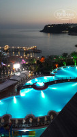 Были в Гранаде с 7 по 20 июля. 90% позитива. Индивидуальный трансфер в отель- неожиданно. Остальные проценты больше пожелание, чем негатив. Не буду повторять предыдущие отзывы, но есть непонимание их. Во- первых, шампанское на входе и бокалы есть, во-вторых,смена белья и уборка в номере по требованию, хоть каждый день, в номере есть табло с двумя кнопочками "Уборка" и "Не беспокоить", нажимая на них, над дверью на электронном табло пишется Ваш выбор, в-третьих, в ресторане достаточный выбор блюд из мяса, птицы и рыбы, есть экзотика, как и все турецкое на любой вкус, есть детский зал, и, в-четвертых, по вопросу занимания лежаков, свободные были всегда, к вечеру убирают все оставленные вещи, и лежаки стерилизуют чем-то спиртосодержащим, как и столики, и все, что можно протереть .Минусы, главное - пляж, из 14 дней только 4 дня он был доступен и не затапливался,муж не умеет плавать, сидел в бассейне, глубина 1,5 метра везде(кроме детского), очень чистый, во- вторых, наличие хрюш, пробовавших раздаточной ложкой блюда из общей посуды, но это компенсировалось изобилием этих же блюд в мини-посуде, в- третьих, лифт, живущий своей жизнью,такой логики нигде не видела, хотя всегда его дожидались, номер был на 5 этаже. Больше минусов назвать не могу. Что поразило: во-первых борьба за экологию! Очень много мероприятий без навязывания, во-вторых мороженое, с 12 и до ночи, это классно, изобилие нац. вкусностей, сезонных овощей и фруктов, вежливый персонал, нет никакого деления по нациям, это ложь, не хами и улыбайся, и к тебе так отнесутся. Номер был с видом на море - очень красиво. Плавание с пирса - фантастика. Красота в номерах и везде, очень классный дизайн. Игра на рояле по вечерам, завораживает. 8 русских каналов. Но, главное, приспособления для инвалидов, даже для спуска в бассейн. Вернемся вновь.
