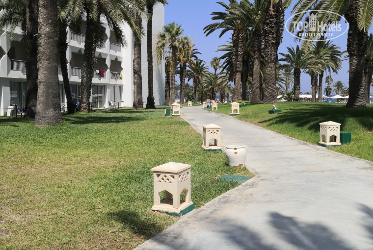 Далее. Расположение отеля очень удачное, рядом город Сусс, до центра на такси 5 минут. Потрясающие богатые пальмы на территории отеля, не хватает правда цветов, красок. Бассейны для детей очень удобные, выбор бассейнов для детей очень хороший. И горки для детей постарше, как мой 11 лет, и для помладше, как ещё один мой 4,5 года. Бассейн с морской водой на любителя. На мой вкус, подогрев бассейна был лишним, при температуре 35 градусов🥵. Мы с ребёнком покупаться в такую жару не смогли ему стало нехорошо, только вечером. Ну, там другие были бассейны.