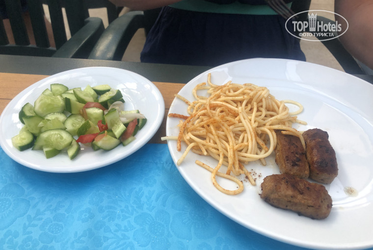 Есть в отеле абсолютно нечего,меню каждый день одно и тоже.Начиная от засохший булки ,заканчивая жареными по второму кругу овощами.Все котлеты были из сои.По итогу мы ели в кафе обед и ужин.Ценик на наши деньги 500 руб , но турецкая кухня на любителя.
