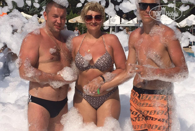 Но, не смотря на все минусу (они бывают в каждом отеле) атмосфера в отеле замечательная. А создает её команда аниматоров. Шеф -аниматор Джан это превосходный ведущий, с большим чувством юмора. Он звезда отеля. Энгин это человек обладающий большим очарованием и замечательной пластикой. Сергей – замечательный артист и великолепный жонглер. Таня, Нюша, Ксения, Эмир - ребята молодцы, не дают скучать с утра до вечера. Днем у бассейна проводят аэробику, степ аэробику, танцы, водное поло, дартс , разные соревнования и конкурсы. В отеле есть футбольное и волейбольное поле. Сын каждый день играл в футбол, водное поло, участвовал в играх у бассейна. Раз в неделю днем у бассейна проводится пенная вечеринка. А по субботам вечером конкурсы и пенная вечеринка на пляже. Для детей вечером начинается мини диско. После детской дискотеки каждый вечер бывают разные представление. Это конкурсы проводимые аниматорами или выступление приглашённых артистов. Было замечательное выступление акробатов из Ганы, у бассейна вечером пели артисты. После шоу проводится дискотека в баре на пляже.