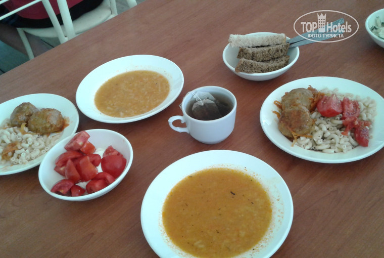 Стенки номеров тонкие, гипсокартон, слышен любой чих. Курительных мест нет, потому люди ютятся в курилке - самоделке магазина. Питание, дешево-сердито, иногда думаешь, как можно так портить хорошие продукты,почему в таком крае нет овощей в достатке... Но, удобно. Столовая в старом здании. Маленькая, столов не хватает. Бедненько.