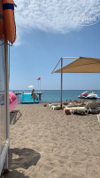 Пляж-песок+галька при заходе в море , есть свой небольшой пирс с которого можно прыгать(лежаков там нет, но есть спасатель), на пляже есть сплошной тент(т.е тень обеспечена)деревянная дорожка почему-то не сделана от начала и до конца пляжа (надо было всегда брать шлепки к морю, из-за раскалённого песка и камней по пути) . Меня просто безумно порадовало и удивило наличие свободных лежаков даже в 11 утра!!!Это видимо и плюс устройства отеля и самого контингента (не было пустых полотенец или вещей занимающих лежаки). Кстати о нем, за нашу поездку были одни русский , украинцы и немного немцев . Море чистое, много рыбок кусающихся 😂 , днём конечно вода становилась мутной из-за волн и прям рядом гоняющих катеров и остального водного спорта.