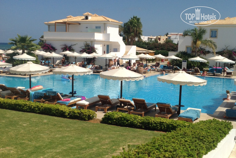 Добрый всем день ! Перед поездкой и все посмотрели , и все почитали ., но реальность превзошла ожидания! Роскошный отель ! Браво архитекторам и дизайнерам за продуманность территории и размещение гостей! 300 номеров, более 1000 человек, но никто никому не мешает , тишина, покой, Релакс ..! Бассейны с морской водой, детский с пресной, прекрасные удобные лежаки , зелёная ухоженная территория , даже есть небольшой огородик ! Нет изнуряющей жары, так как с моря дует лёгкий бриз , море в 10 метрах от отеля, справа вполне спокойно входишь и выходишь , искупался , и загорай.., те проблем с заходом в море ( чуть правее нет ) . Бассейны каждое утро чистят и убирают , плиты в области бассейна тоже каждое утро моют с мылом . Уборка номеров замечательная, набор в баре , набор мыльных принадлежностей и полотенец удовлетворит даже самого взыскательного клиента ! Кофемашина с капсулами в номере , всегда бутылка вина , орешки , сухофрукты ! Если вам недостаточно .., стоит набрать на телефоне цифру 9 , озвучить своё желание , и через 5 минут все у вас в номере ! Питание в ресторанах - отдельная песня! Всего много, вкусно, изысканно ! Накрывают как в помещении , так и на улице , замечательное розовое , белое , красное вино , шампанское Prosseko , узо, подадут вам и в обед и ужин ! Отдельная тема рестораны а- ля карт !! Самый лучший ( нам так показалось ) -рыбный! Подача блюд шедевральная, изысканно , вкусно ! Гребешки , лосось на подушке из овощей, лобстеры, те во всех ресторанах а ля карт вы выбираете из сета то, что хотите ! 2место мы бы отдали Итальянской кухне ! Салат с морепродуктами и пармезаном , великолепные пиццы ( больше всего понравилась с салями ) , пожелание - хочется попробовать все ., а их приносят целыми ?!! Съесть все это невозможно , а выбрасывать жалко .., может будете давать разные , но порционно ? Жаль труда пекарей! Мексиканский, Критская таверна с прикольной подачей баранины , Азиатский с особым колоритом .., но попасть в них сложновато , приезжая вы заводите Приложение и начиная с 12 ночи можно бронировать .., но не всегда получается., Приложение бывает не открывается ..! И тут вам на помощь приходит известная, красивая, замечательная, все понимающая Ольга с ресепшн ! И мистер Панайотис - менеджер ресторанов а-ля карт ! Замечательный человек , который примет вашу просьбу и при наличии свободного места вас запишет ! Мистер Панацотис - вы - the best !! Любая просьба решается ею на раз - два ! Всегда спокойная, с улыбкой, все расскажет , поможет в решении любого вопроса ! Ольга - это жемчужина этого отеля! Берегите и дорожите ею ! Оля, спасибо вам ещё раз за заботу и тепло которым вы нас окружили ! Бары- шампань - бар : с 18, изумительный коктейль Голубая лагуна ( к которому подаётся свежая клубника в шоколаде ) ; шампанское с кампари - к нему небольшой сет из суши и роллов ; но звезда этого бара - бармен - чемпионка Греции по бодибилдингу Васильки !! Это её имя! Привет тебе с Урала, ты - супер ! Ночной бар и дневной бар с отличным алкоголем и внимательным отношением к гостям !! Они вам сделают коктейли , которых даде нет в меню ! Проверили на себе ! Особенно им удались коктейли с виски !! Замечательно делают кофе , выбор кофе огромен ! Алкоголь как импортный , так и греческий ! Всем этим заведует замечательный, позитивный Антонио ( вылитый Бандерос !) и замечательный бармен -Вагелиус , и девочки официантки -Деспина - умница, к