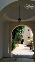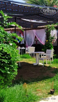 Территория ухоженная, зеленая, большая. За корпусом с маленьким бассейном есть ресторанчик во французском стиле (красиво)), но похоже он относится к соседнему отелю.