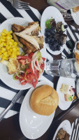 Питание разнообразное,голодным не будешь, всегда есть мясо и рыба,но мало фруктов. Закуски на пляже-а это гирос,бургеры,наггетсы,фри,овощи и т.д.,заменяют обед)